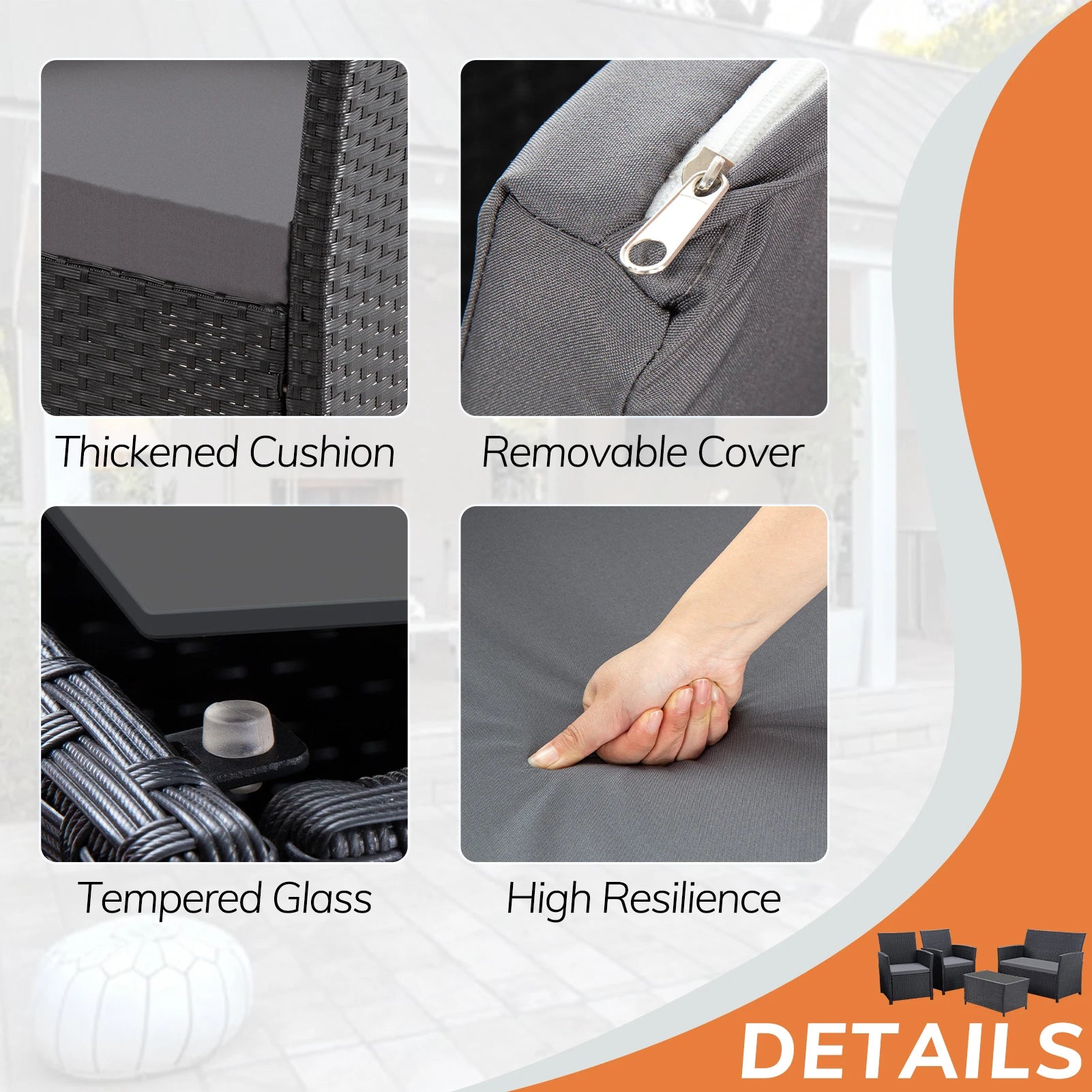 - Versatile four-piece layout lets you configure seating for conversations, casual dining, or lounging in sun and shade, works well on decks, patios, or balconies.