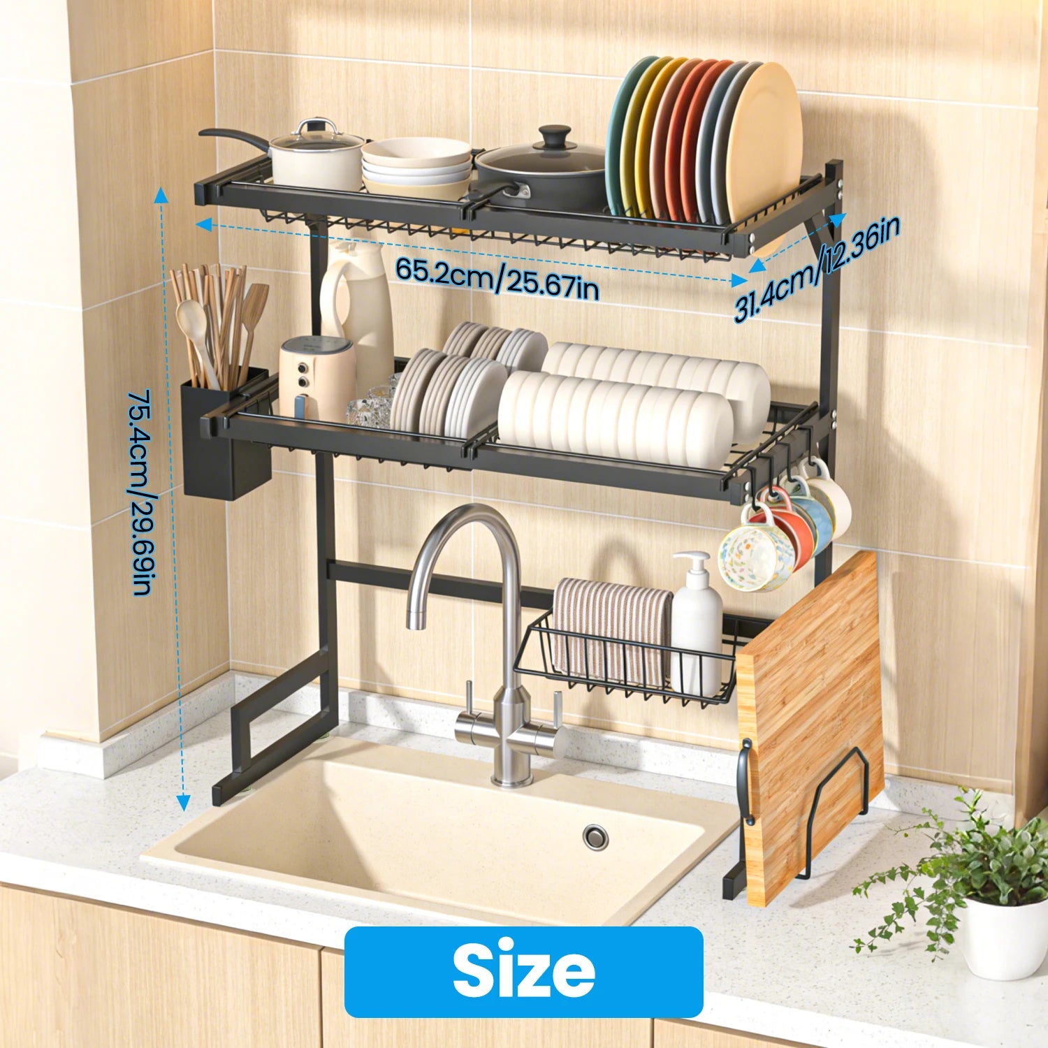 - You get sturdy iron construction that supports heavy pots and stacked plates while keeping your countertop clear and your kitchen looking neat.