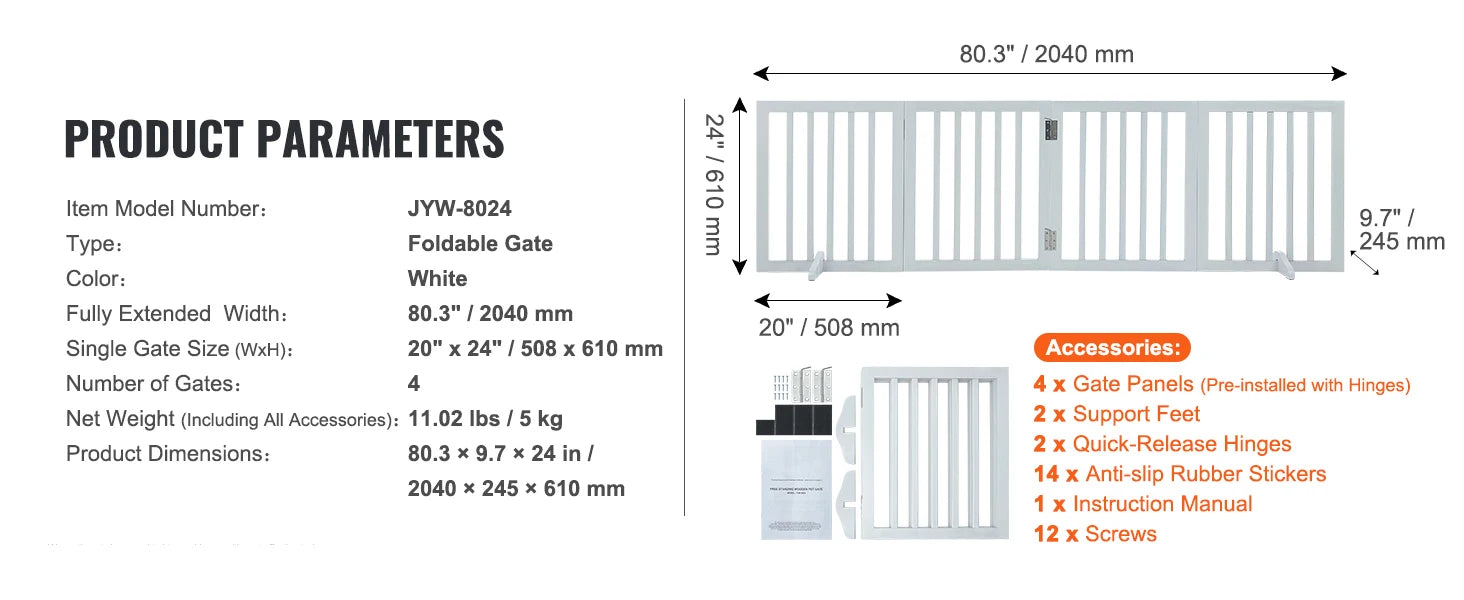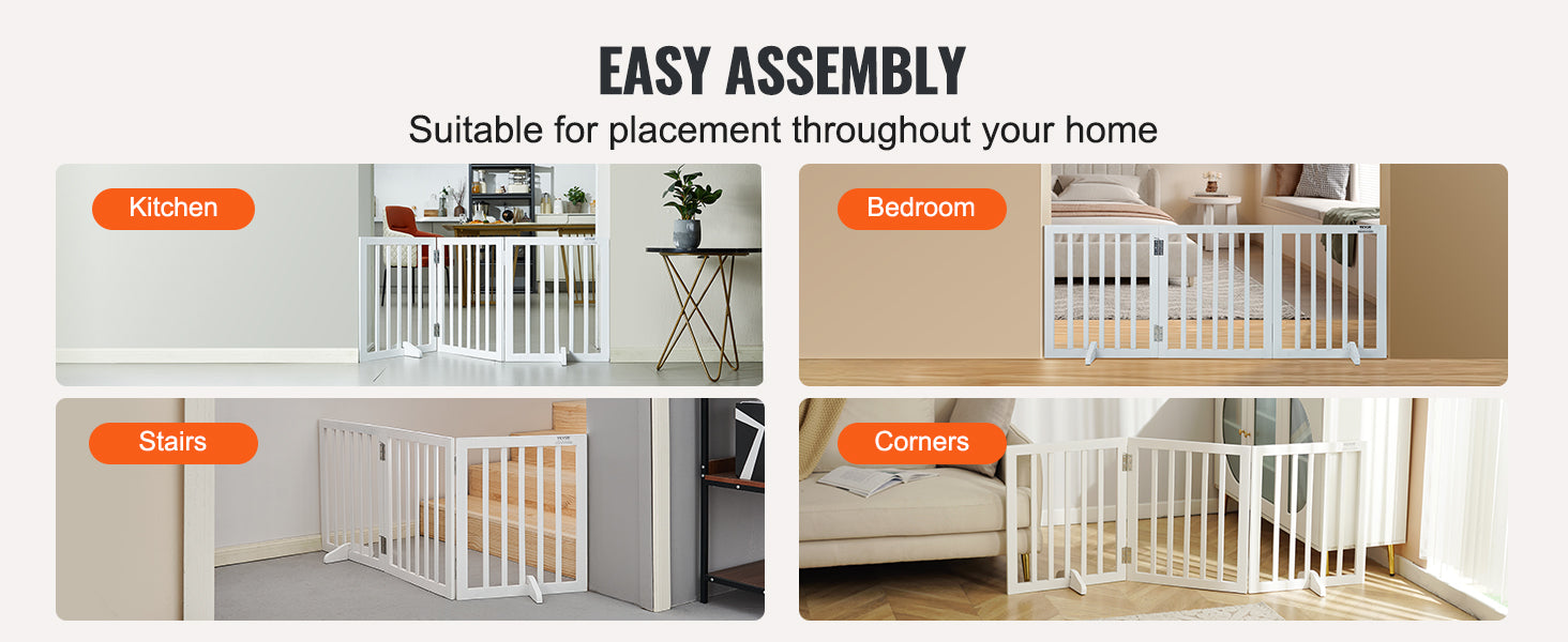 - Sturdy white wood frame blends with modern, Scandinavian, or classic decor while providing a visible, reliable barrier for your dog.